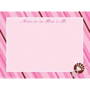 Product Description : Here's a fun shower past time for your guests - each invitee can provide marital advice to the bride to be on these pretty Advice Cards! Each package contains 20 advice cards measuring 4 1/2" x 6" and reads "Advice for the Bride to Be" at the top, and lots of empty pink space for plenty of sage advice.